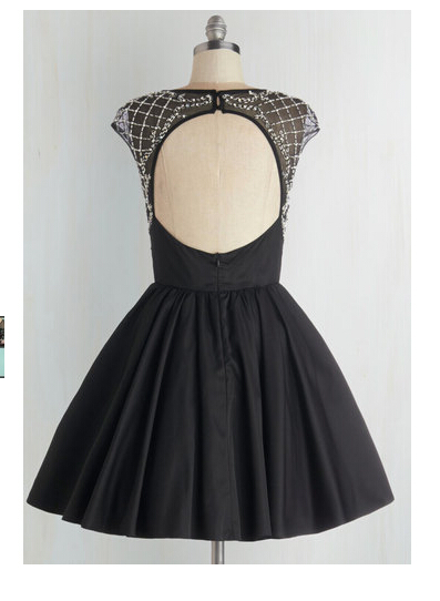 Short Black Homecoming Dress,Mini Graduation Dresses,Open Back Homecoming Dress,Chiffon Homecoming Dresses, O-Neck Homecoming Dress,Homecoming Dress.