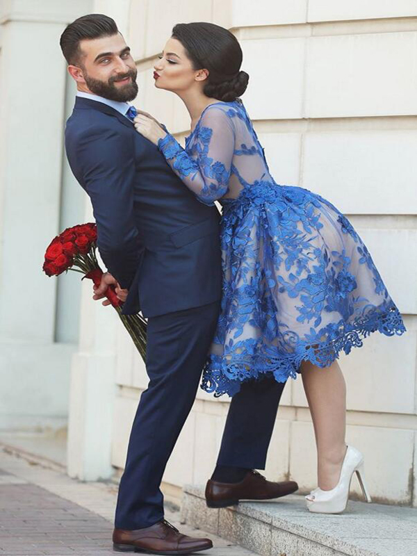 blue lace homecoming ,short prom dress ,long sleeves homecoming dress,scoop homecoming dress , cheap homecoming dress ,custom homecoming dress