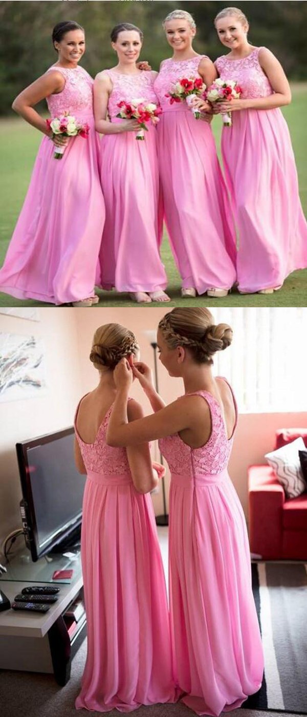 Long bridesmaid dress ,pink bridesmaid dress ,A-line bridesmaid dress ,sleeveless bridesmaid dress,round neck bridesmaid dress,custom bridesmaid dress,cheap bridesmaid dress