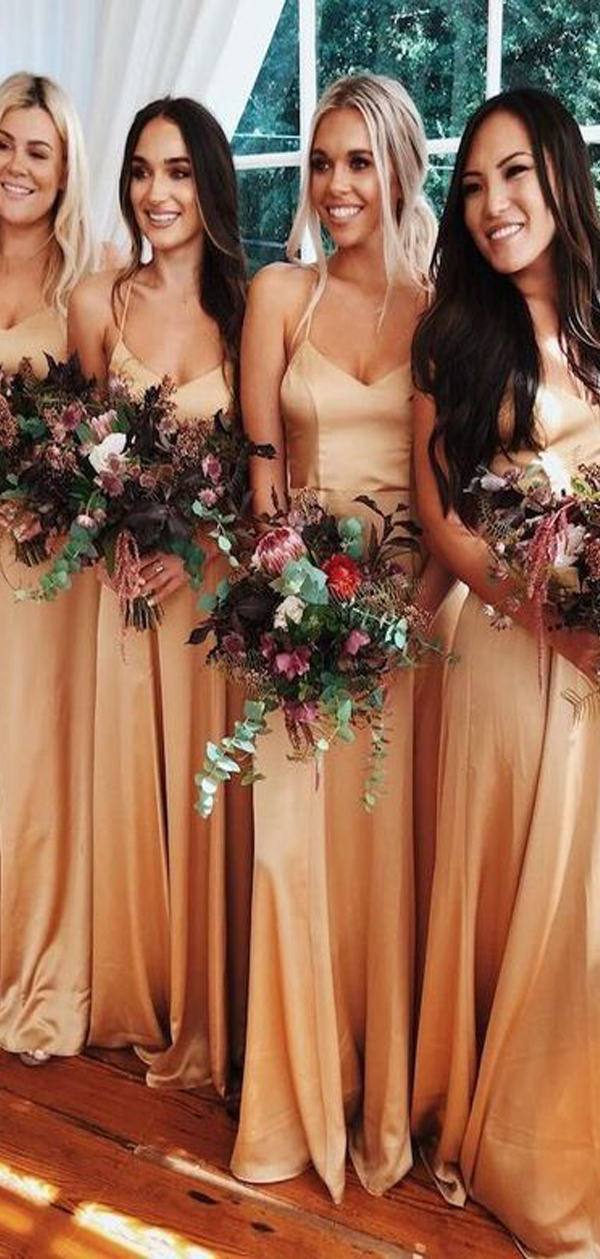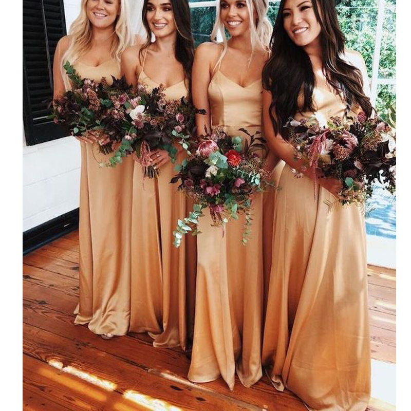 Spaghetti Straps Simple Unique Modest Long Bridesmaid Dresses,BD1005