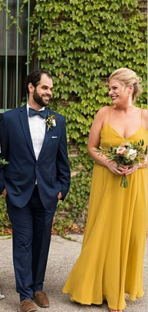 Yellow Spaghetti Straps Simple A-line Bridesmaid Dresses,BD1001