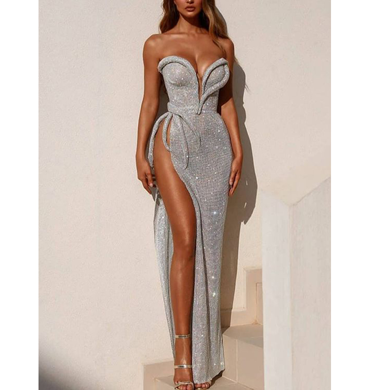 Sparkly Sequin Sexy High Slit Modest Formal Prom Dresses,PD1004