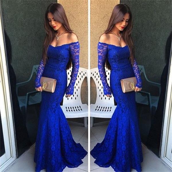long sleeves prom dress , mermaid lace prom dress , sexy blue prom dress , fashion prom dress.