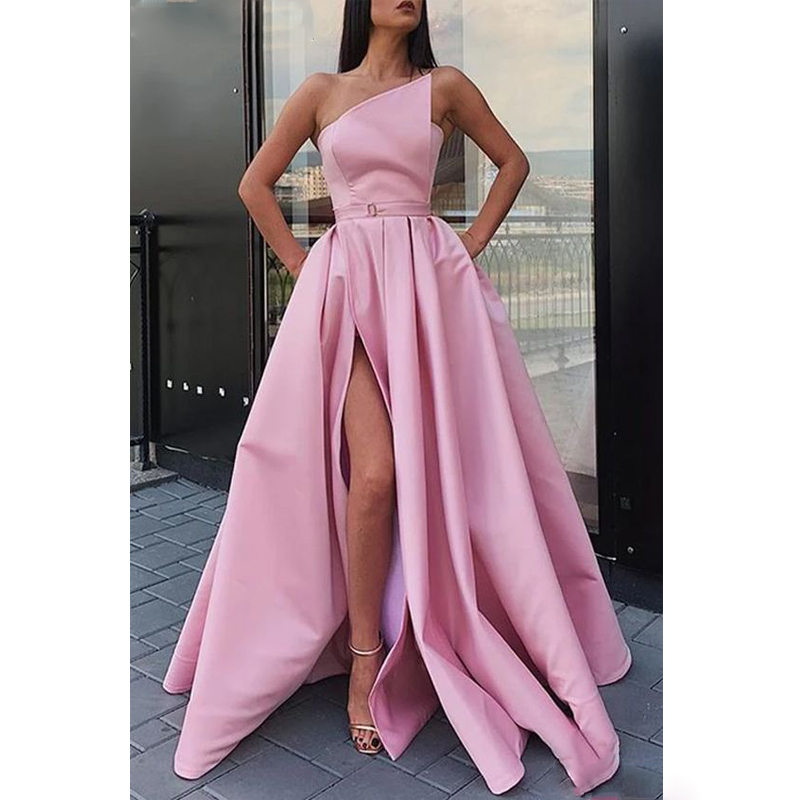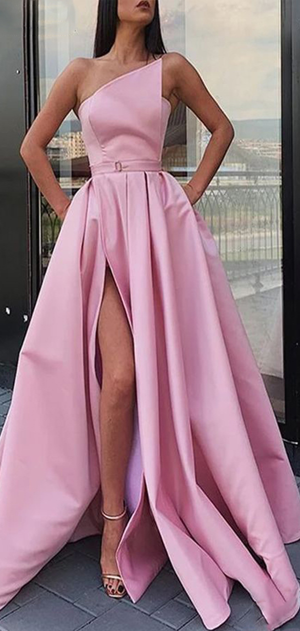 A-line Cheap Unique Deisgn Pink Satin Simple Elegant Modest Long Prom Dresses ,PD1019