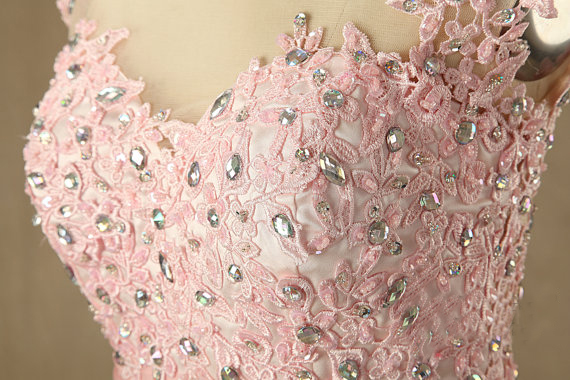 The pink prom dress is fully lined, 4 bones in the bodice, chest pad in the bust, lace up back or zipper back are all available, total 126 colors are available.