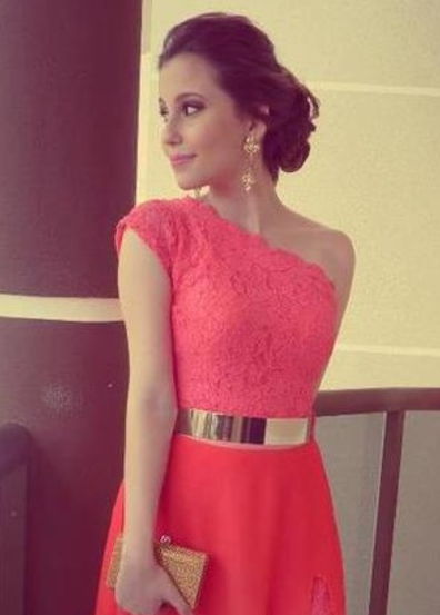 red prom dress, cheap prom dress, lace prom dress, detachable prom dress, one shoulder prom dress, BD1489