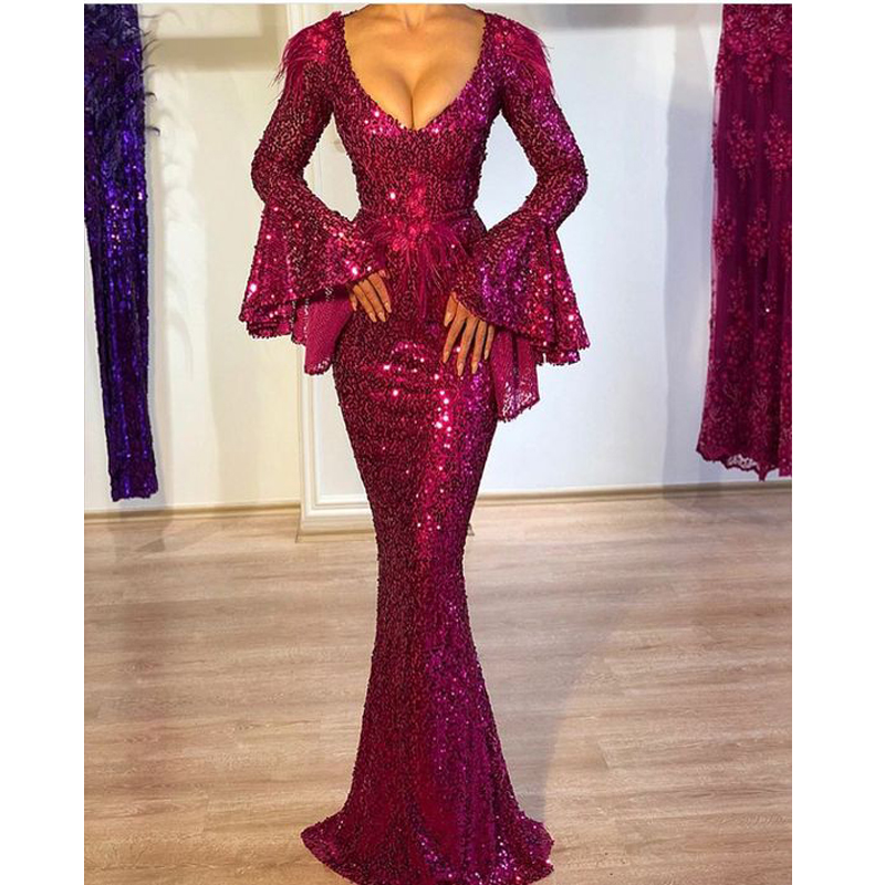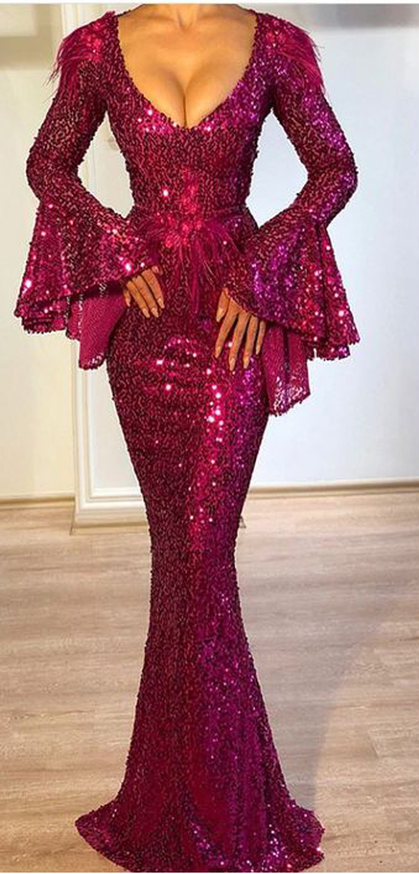Sparkly Sequin Mermaid Long Sleeves Elegant Formal Cheap Modest Long Prom Dresses,PD1002
