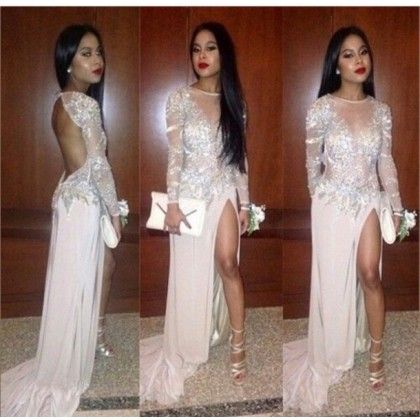 white prom dress, long prom dress, prom dress, sexy prom dress, long sleeve prom dress, custom prom dress, BD14401
