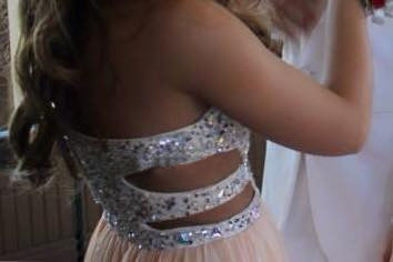 The champagne prom dress is fully lined, 4 bones in the bodice, chest pad in the bust, lace up back or zipper back are all available, total 126 colors are available.