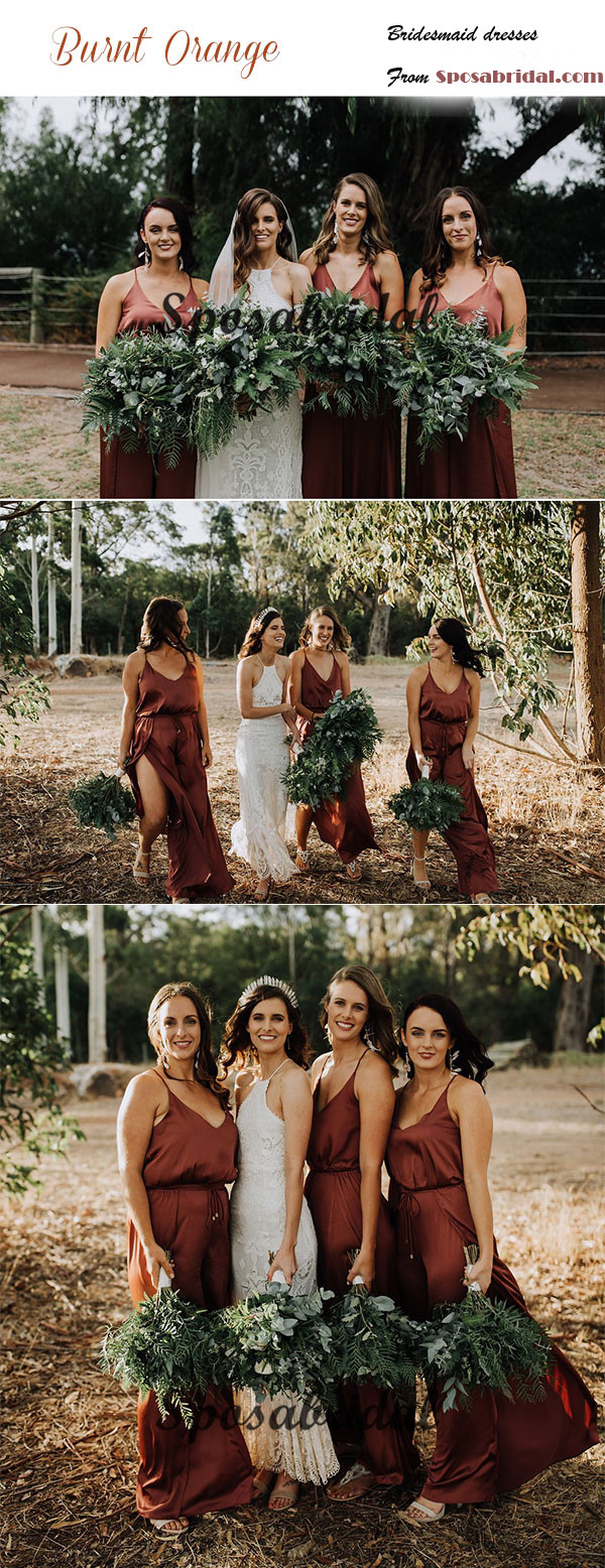 Simple Spaghetti Straps Cheap Burnt Orange Bridesmaid Dresses,BD1007