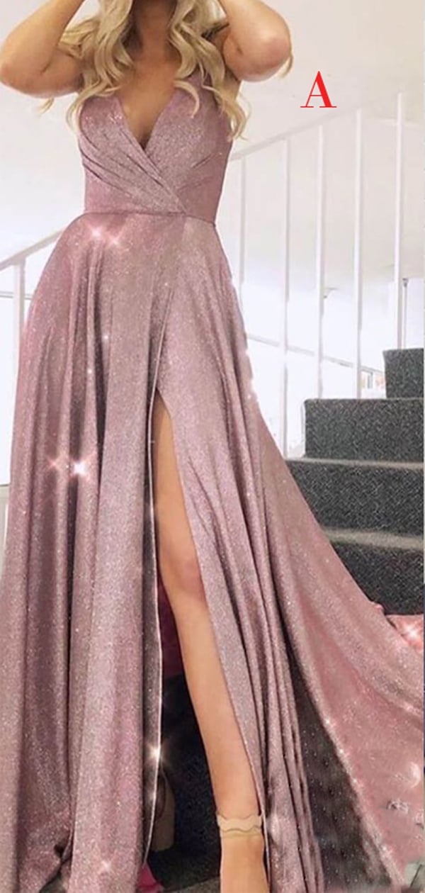 Charming A-line Side Slit Sequin Sparkly Long Shining Gorgeous Dresses,PD1026