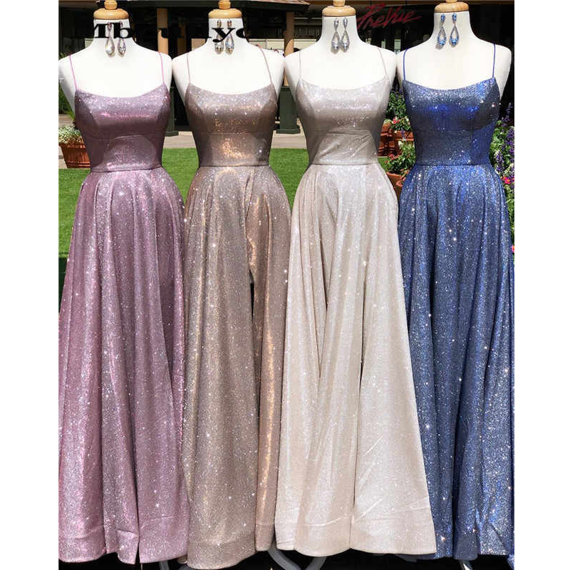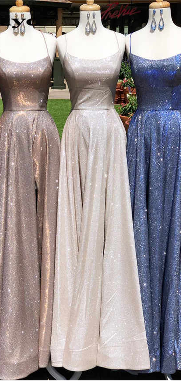 Charming A-line Sparkly Spaghetti Straps Long Vintage Shining Simple Prom Dresses,PD1031