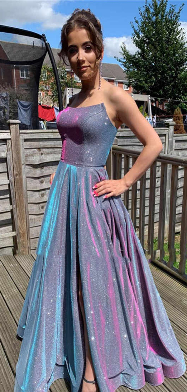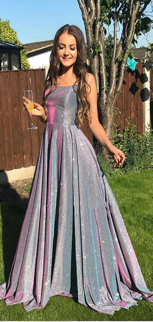 Charming A-line Sparkly Vintage Modest Long Shining Simple Prom Dresses ,PD1032