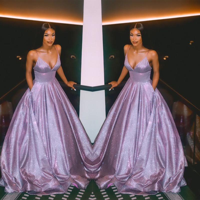 A-line Spaghetti Straps Sparkly Purple Long Shining Gorgeous Prom Dresses, BD1691